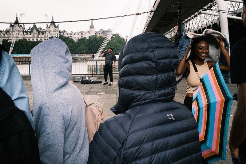 I am interested in how we as photographers can modify time and space by choosing when to press the shutter button and choosing what to include in the frame to reveal candid moments in public places that we often ordinarily overlook. Searching for and anticipating these moments on the street have become a real addiction.