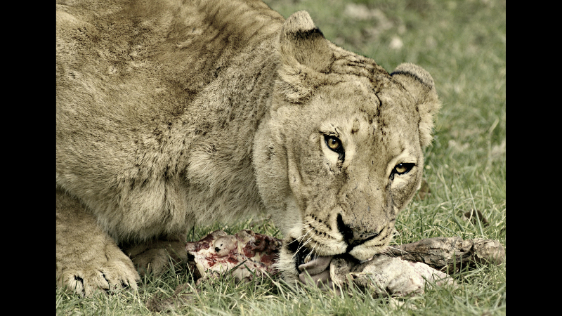 Lioness at Lunch by Lesley Hunt
